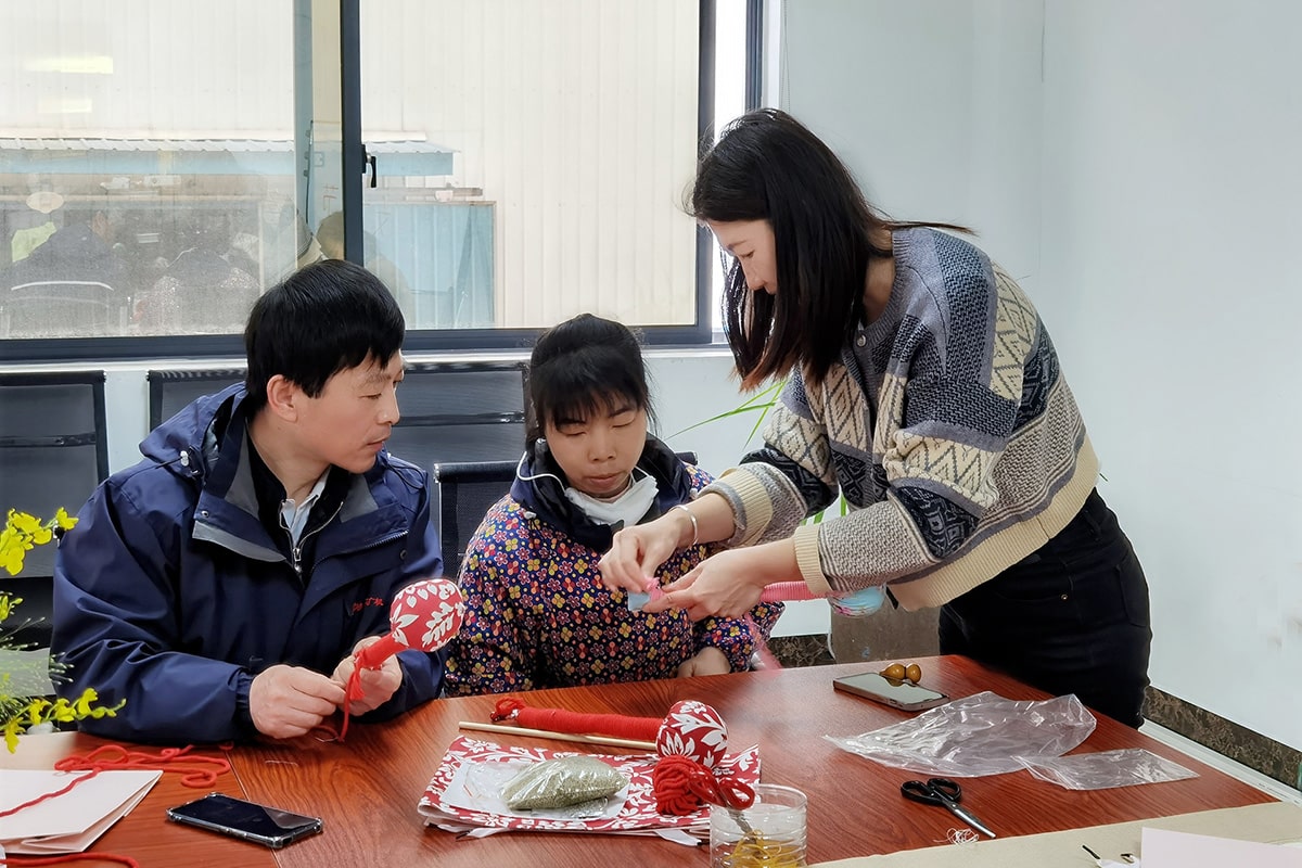 活動伊始,主持人介紹了養(yǎng)生錘的歷史與文化背景,讓女同事們對養(yǎng)生錘有了更深刻的認(rèn)識,并通過視頻方式讓大家了解養(yǎng)生錘的制作方法和注意事項(xiàng)。女同事們展現(xiàn)出了前所未有的專注和熱情,從選材、包扎、繞繩……,仔細(xì)打磨每一個(gè)細(xì)節(jié),仿佛在用自己的雙手編制著生活的印記。